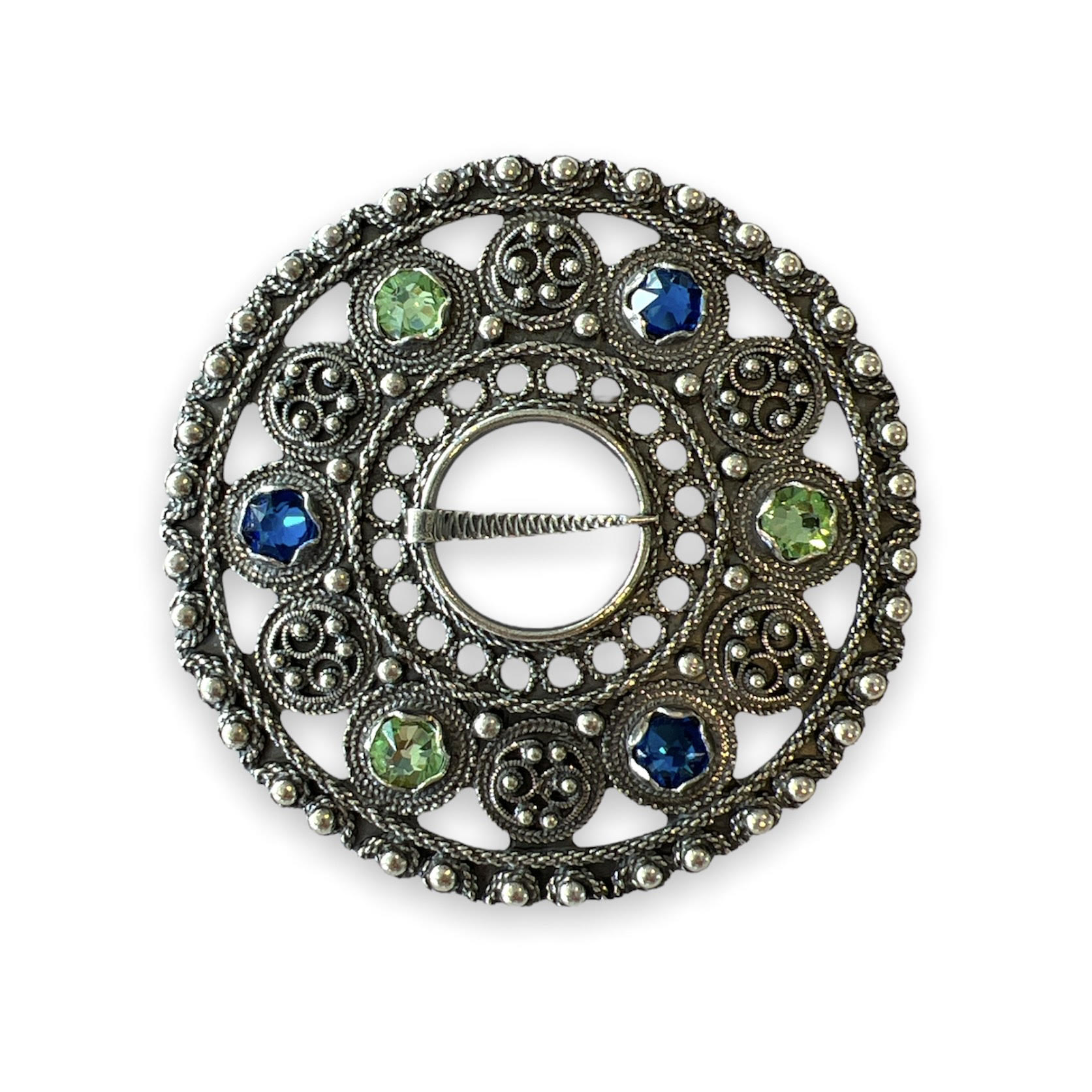 Nål med krystall, oksidert - 02 Blå & 12 Lysegrønn