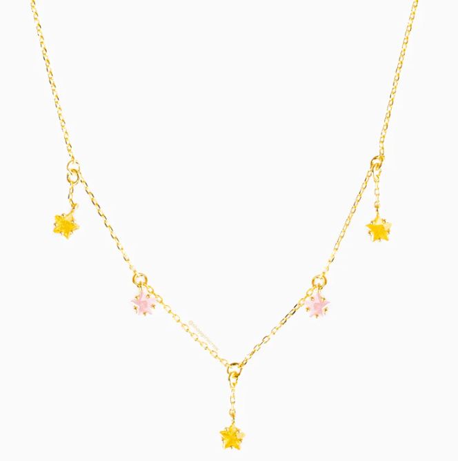 Beskrivelse Alle stjernene er nærmere når du har på deg vårt Gummy Stars-kjede! Disse strålende gule og rosa steinene gir den perfekte fargen til ethvert antrekk og vil alltid gi deg en skinnende og ny følelse. 18k gullbelagt, 18k rosegullbelagt eller rhodiumbelagt over messing med et beskyttende belegg Cubic zirconia steiner 13" kjede med 2" forlengelse |