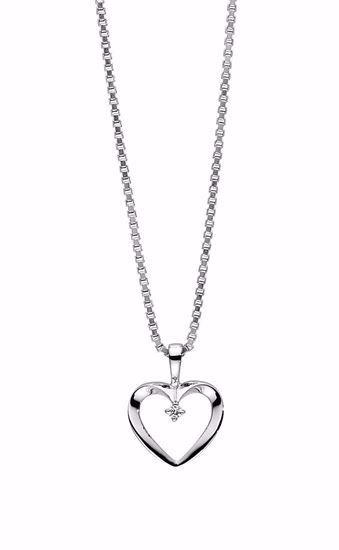 Hvitt gull anheng hjerte med brillant 14kt.