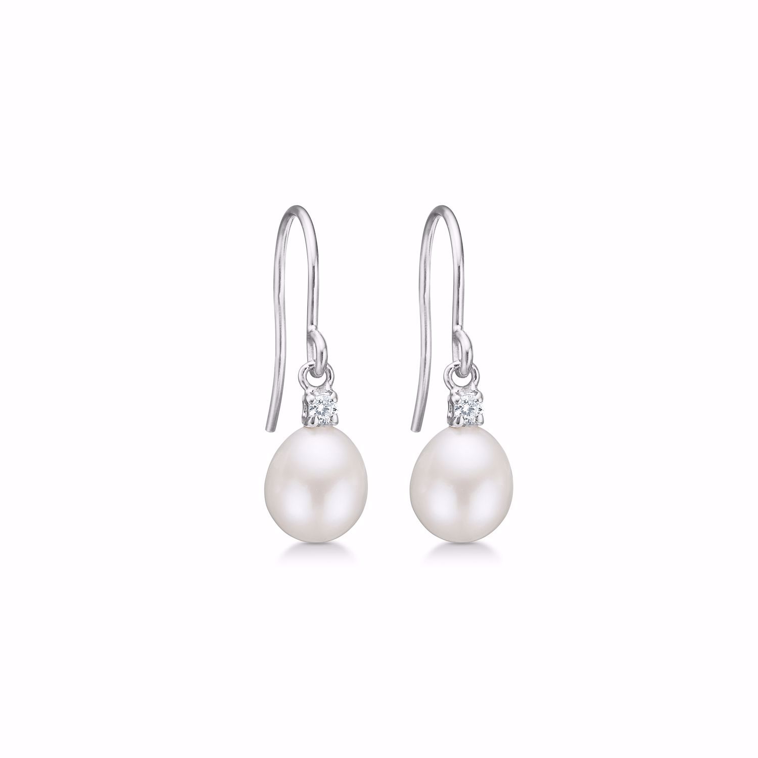 SEVILLE - Sølv øreheng med ferskvannsperle og zirkonia