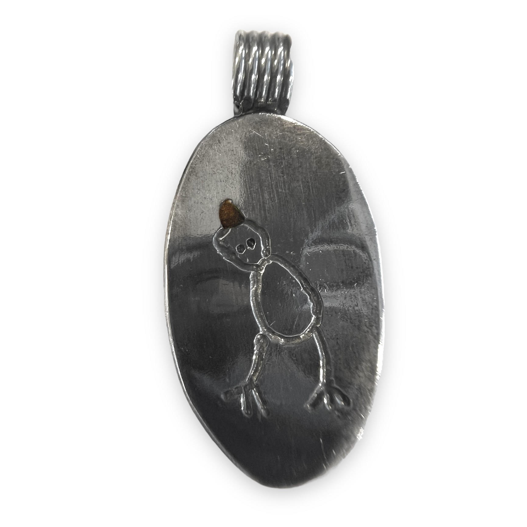 Beskrivelse Egenprodusert hos Klosterfoss Smykkeverksted. Fra kolleksjonen "Fra et barns hånd" Kolleksjonen består av barnetegninger som er risset inn i ulike utsmykninger. Håndlaget blankt sølv anheng med fugl. Lærkjede hører sammen med anhenget! Oksidert sølv fjæringslås med endefester. Kjede: Glatt lærkjede, 50cm langt - Diameter 3mm Størrelse: 3,5x1,6cm Tykkelse: 2mm Material: Epoxy (Rød/Orange) Finnes kun i et eksemplar. IDEEN BAK KOLLEKSJONEN! Barn har noen av de mest kreative og inspirerende måtene å se og tolke verden på! Barn tegner og illustrerer ting på en enkel måte som virkelig skiller seg ut. Rine tenkte derfor at det hadde vært utrolig gøy å lage en smykkeserie med røffe sølvsmykker med direkte replikater av barne tegninger. Disse tegningene er derfor faktisk tegnet av et barn på 6 år, noe som gjør de ekstra gøyale! |