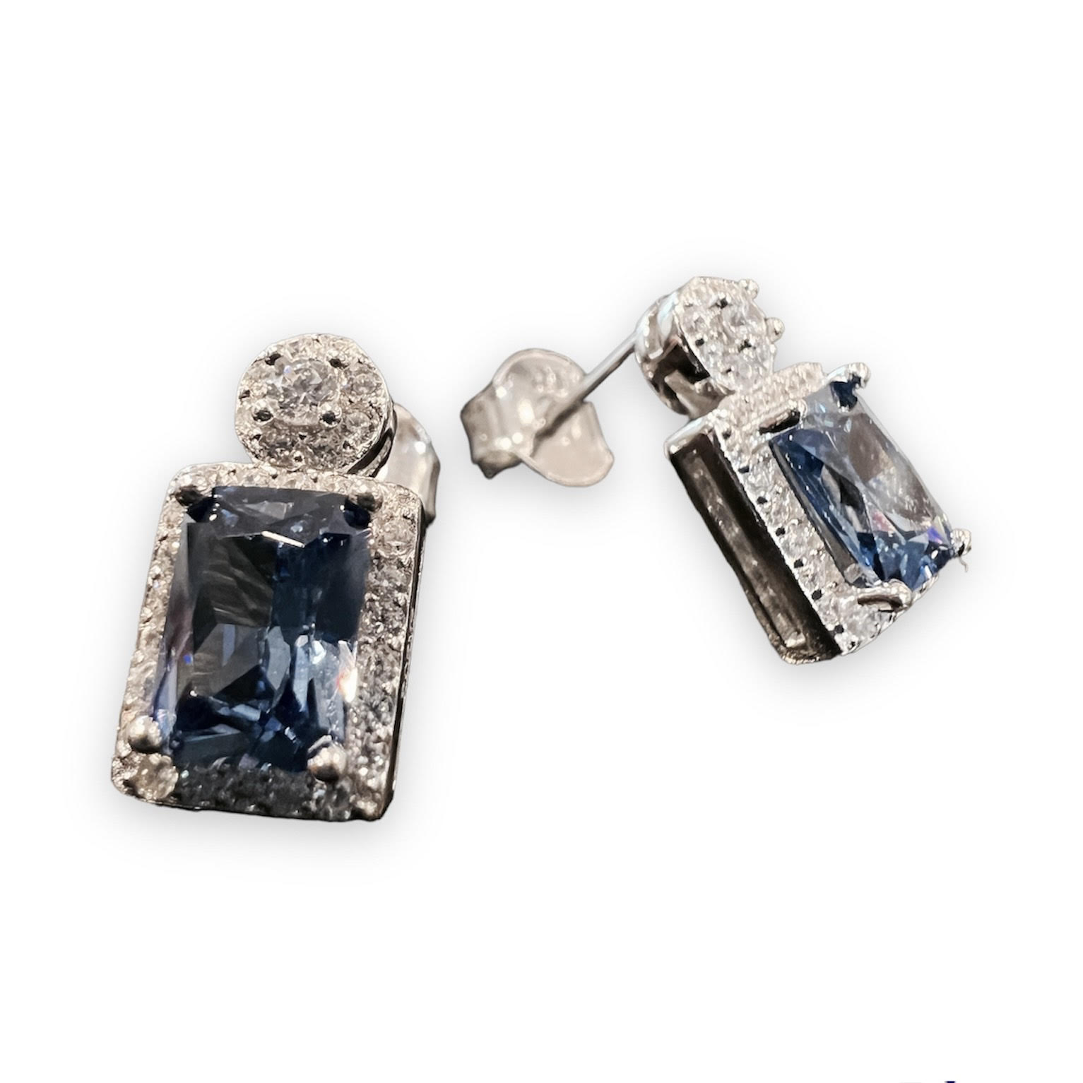 Sølv ørepynt m. blank & blå cubic zirkonia
