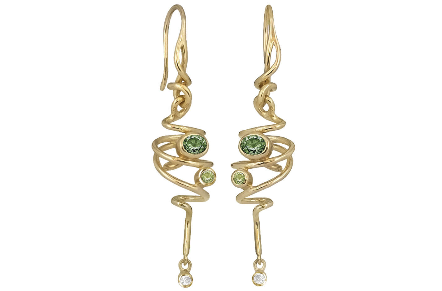 4x3 mm grønn kvarts, 2 mm peridot, 1,5 mm hvit topas