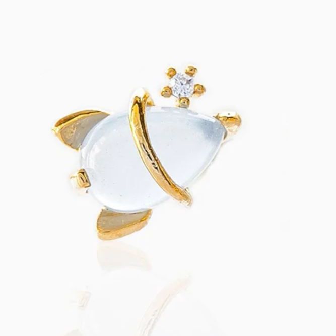 Beskrivelse SELGES EN OG EN, IKKE I PAR. Kommer du? Vi eksploderer til et fantastisk sted i 5, 4, 3, 2, 1! - 18kt. belagt over messing med beskyttende belegg - Cubic zirconia steiner - Sterling sølv stolper og sommerfugl bakside - Ca. 1 cm lengde og bredde Bilde lånt av leverandør. |