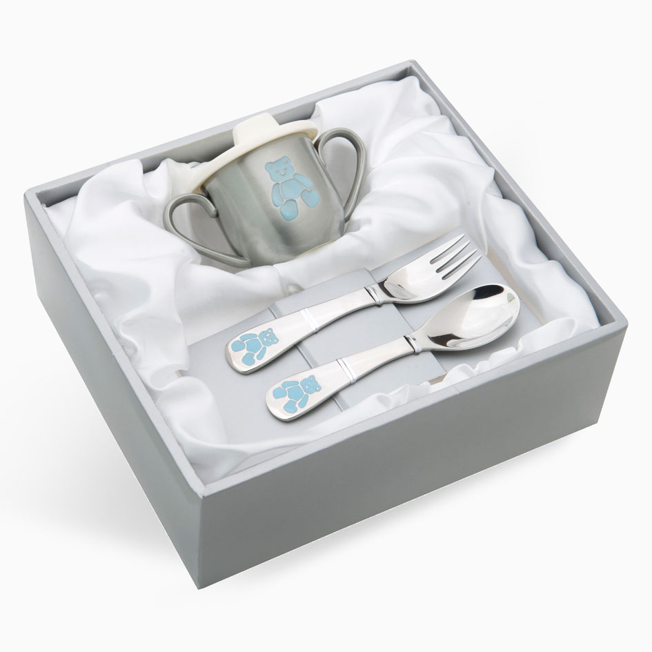 Gavesett - Blå bamse krus & bestikk