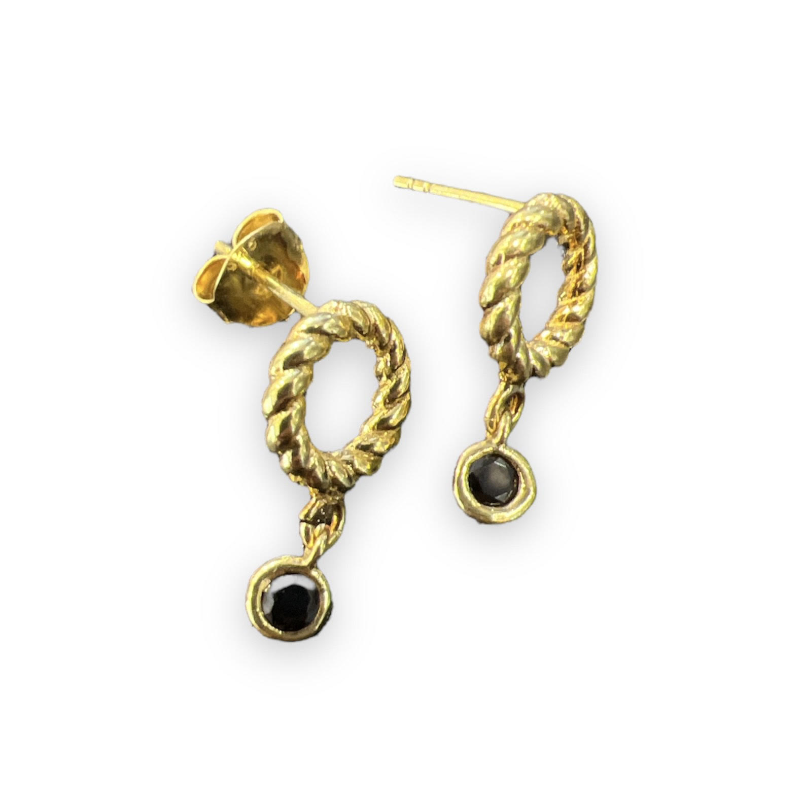 Ørepynt forgylt, svart zirkonia