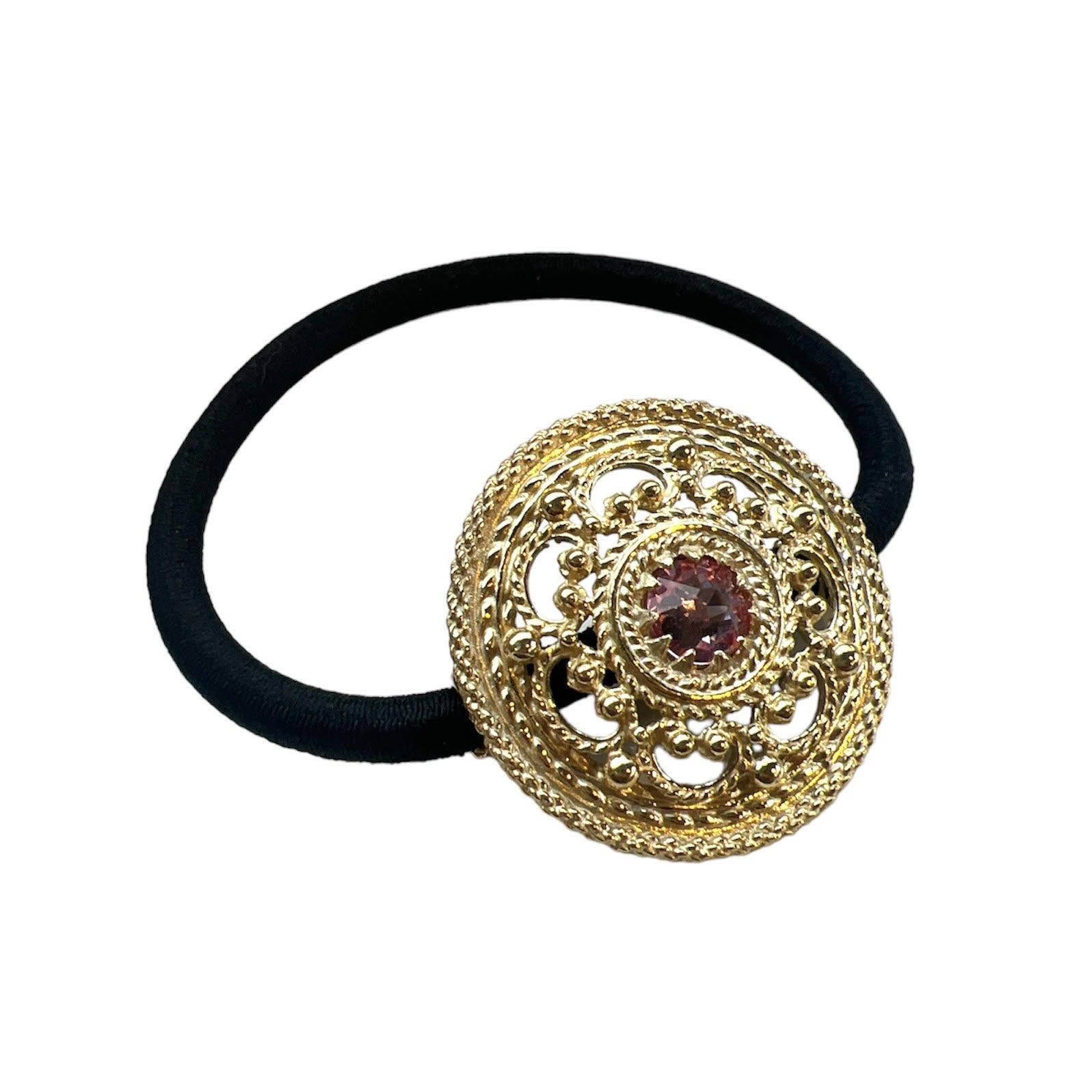 Hårstrikk i forgylt sølv med Swarovskikrystall i farge 05. D 2,9 cm.