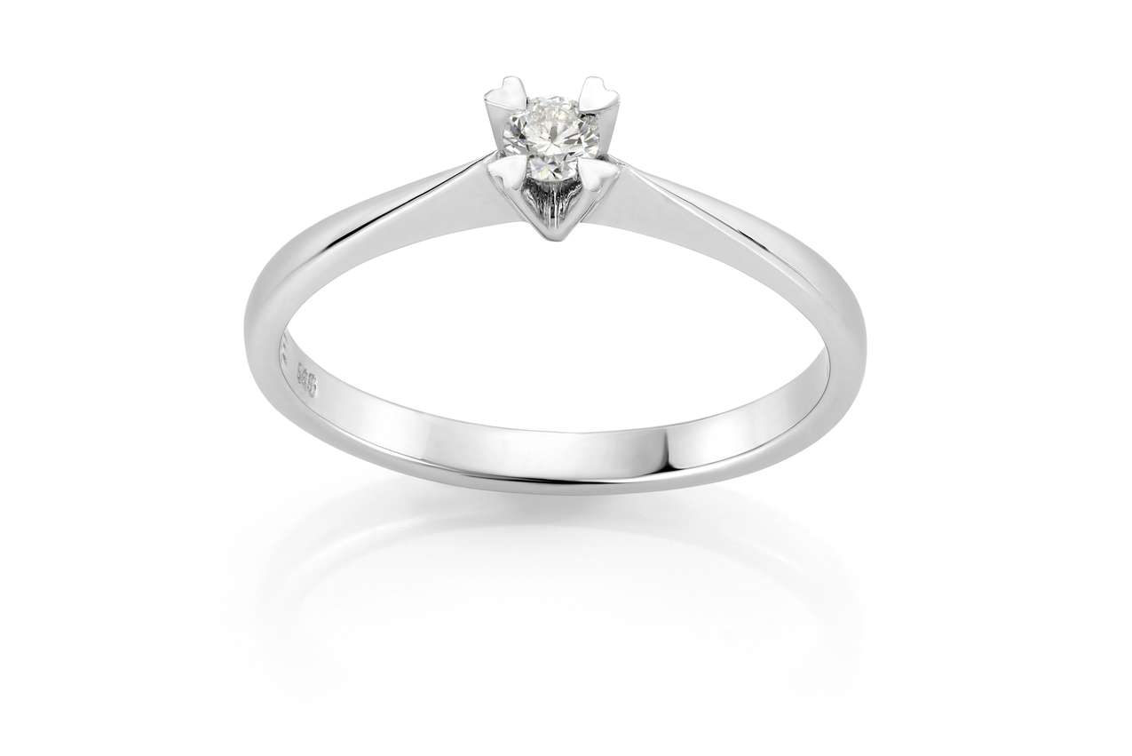 Beskrivelse Kun str. 56 inne i butikk, andre størrelse er bestillingsvare, men kan bestilles her. Dette resulteres i noe lenger leveringstid, noen uker. Overflate: Rhodinering Hvitt gull 585 Antall diamanter: 1 Diamant vekt total: 0,05 Diamant klarhet: P1 Farge: HWE |