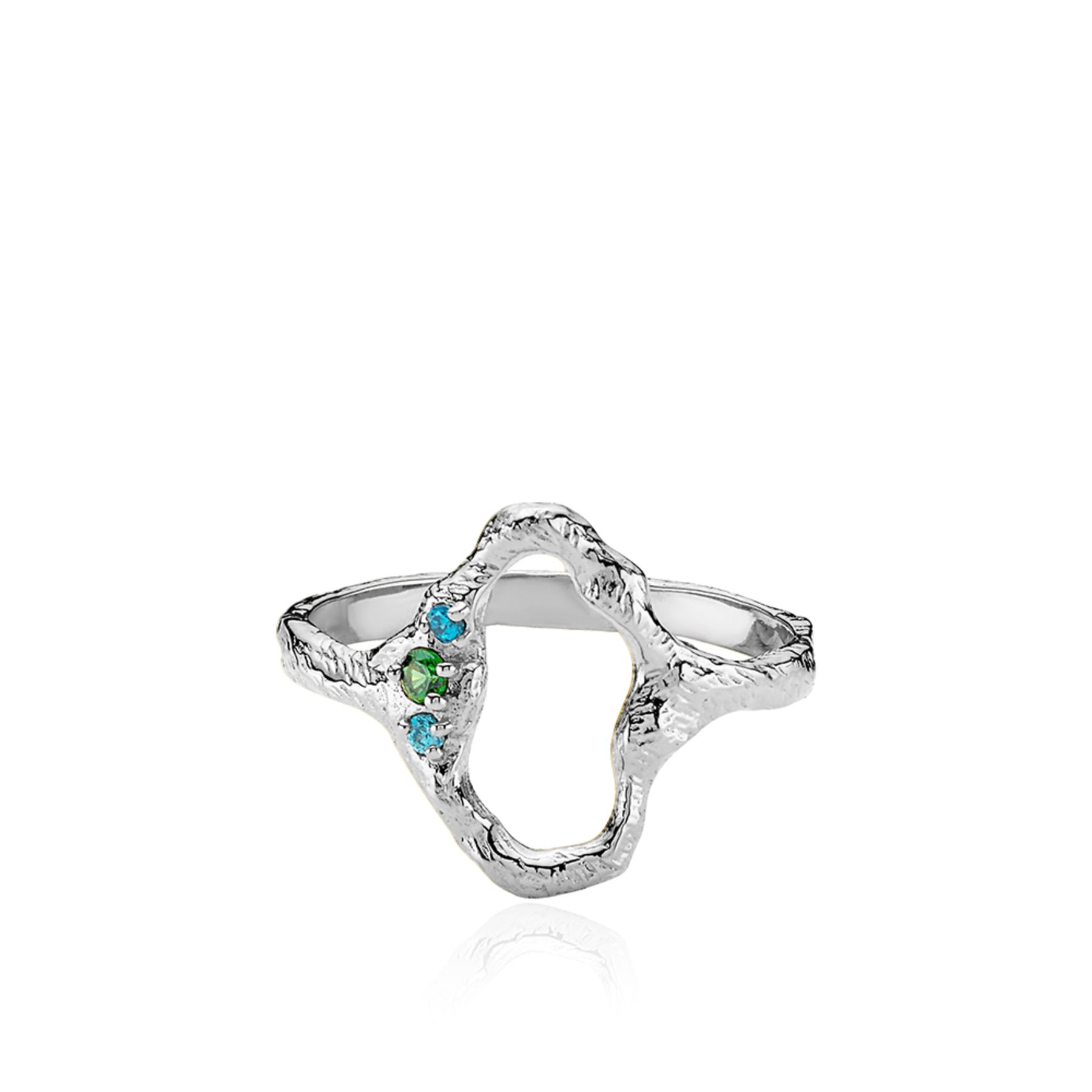 Beskrivelse OCEAN ring i sterling sølv med blå og grønne sirkoner Designet og uttrykket er unikt i denne ringen i form av sitt organiske og bankede utseende og vakre grønne og blå zirkoner. OCEAN -kolleksjonen består av øredobber, ringer, anheng og halskjeder. Serien er laget med blå og grønne sirkoner og i slått sølv og gullbelagt sølv. Tilgjengelig i 50, 52, 54, 56, 58 Materiale: Rhodiumbelagt sterlingsølv Bilde lånt fra www.izabelcamille.com |