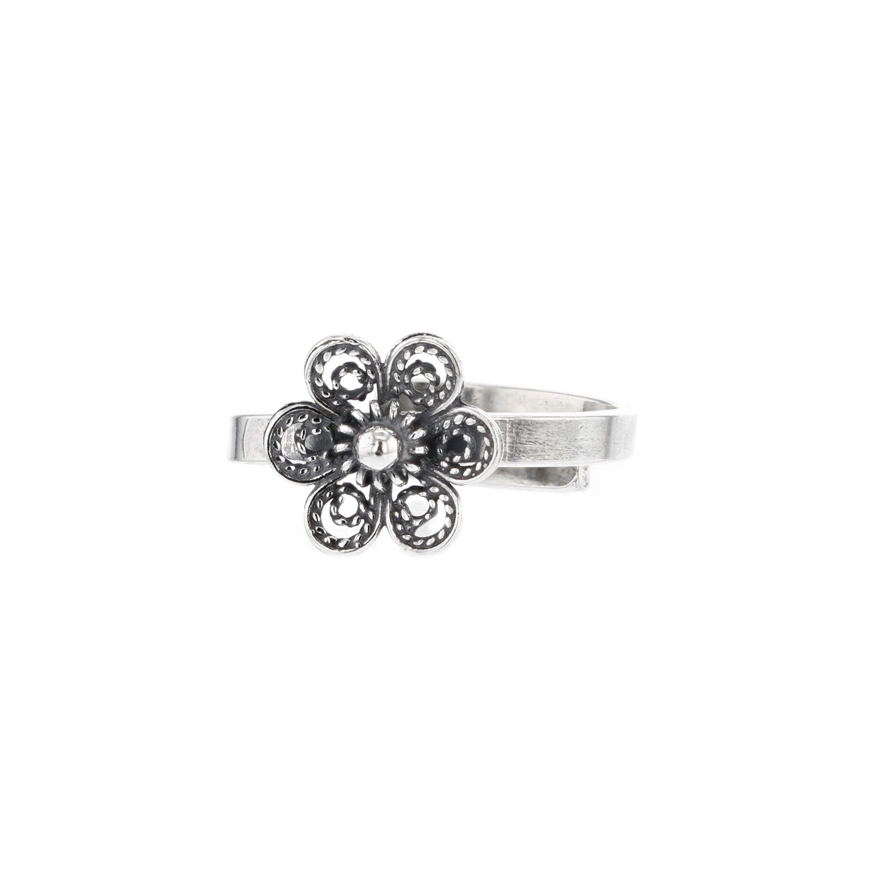 Regulerbar ring i oksidert sølv. D 1,5 cm.
