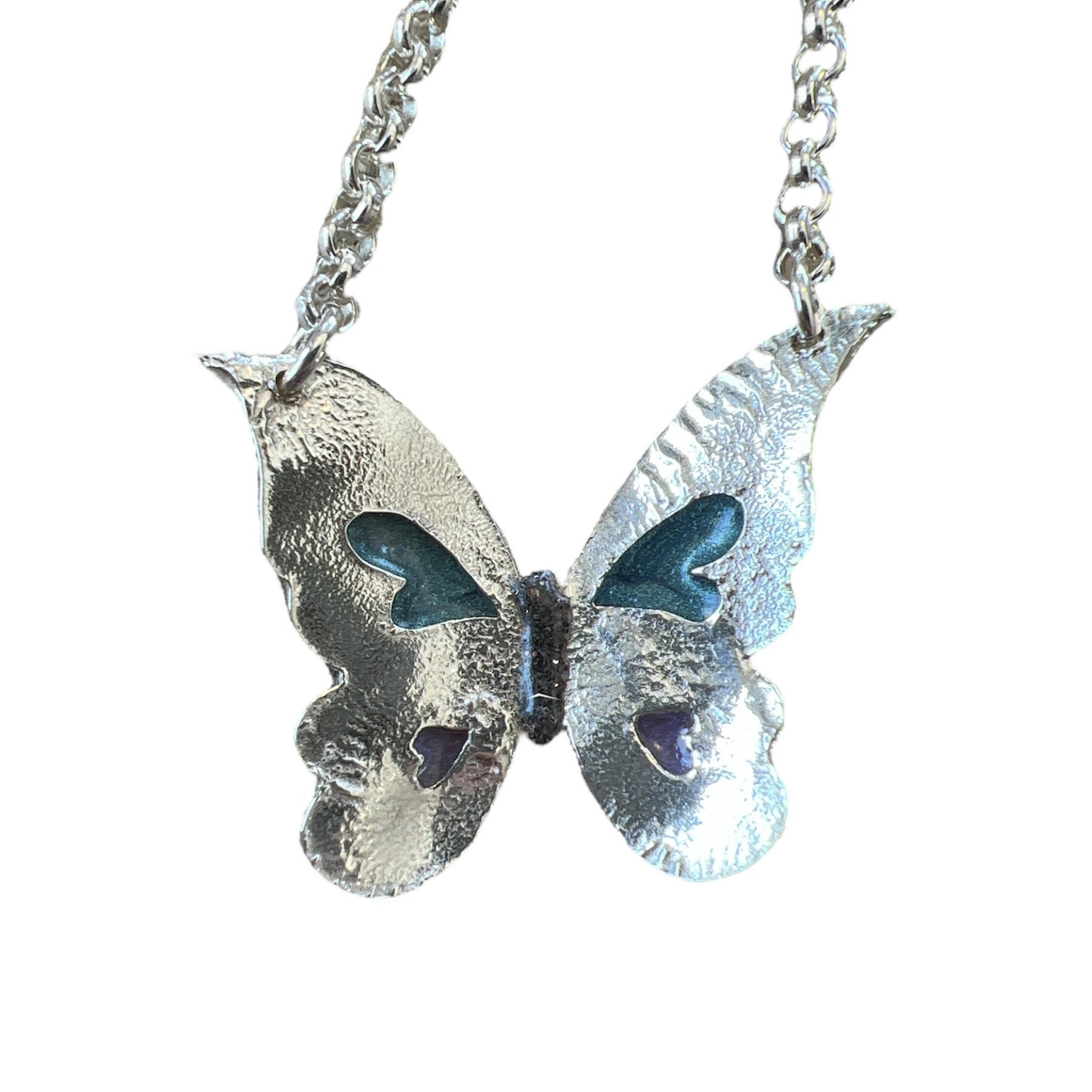 Beskrivelse Designet av Rine Negård HAR MATCHENDE RING - SØK: RSR01-BLÅ & LILLA Disse sommerfuglene er Klosterfoss Smykkeverksted spesialitet! Hvert anheng er designet og håndlagdet hos oss. Prossesen sommerfuglene blir laget i gjør at alle blir unike og enestående, akkurat som oss mennesker! Dette er en perfekt gave til deg selv eller en du er glad i! Sommerfuglene kommer i mange ulike størrelser og varianter. (Se bilde for størrelse) Alle har tre øsken fra toppen som kjede kan tres igjennom. Metall: 925 Sølv Lengde på kjede: 45cm Material: Epoxy mix KJEDE FØLGER MED! Håndlaget hos Klosterfoss Smykkeverksted. Ønsker du akkuart dette hjerte, men i en annen farge? Ta kontakt med oss, så lager vi en personlig til deg! |