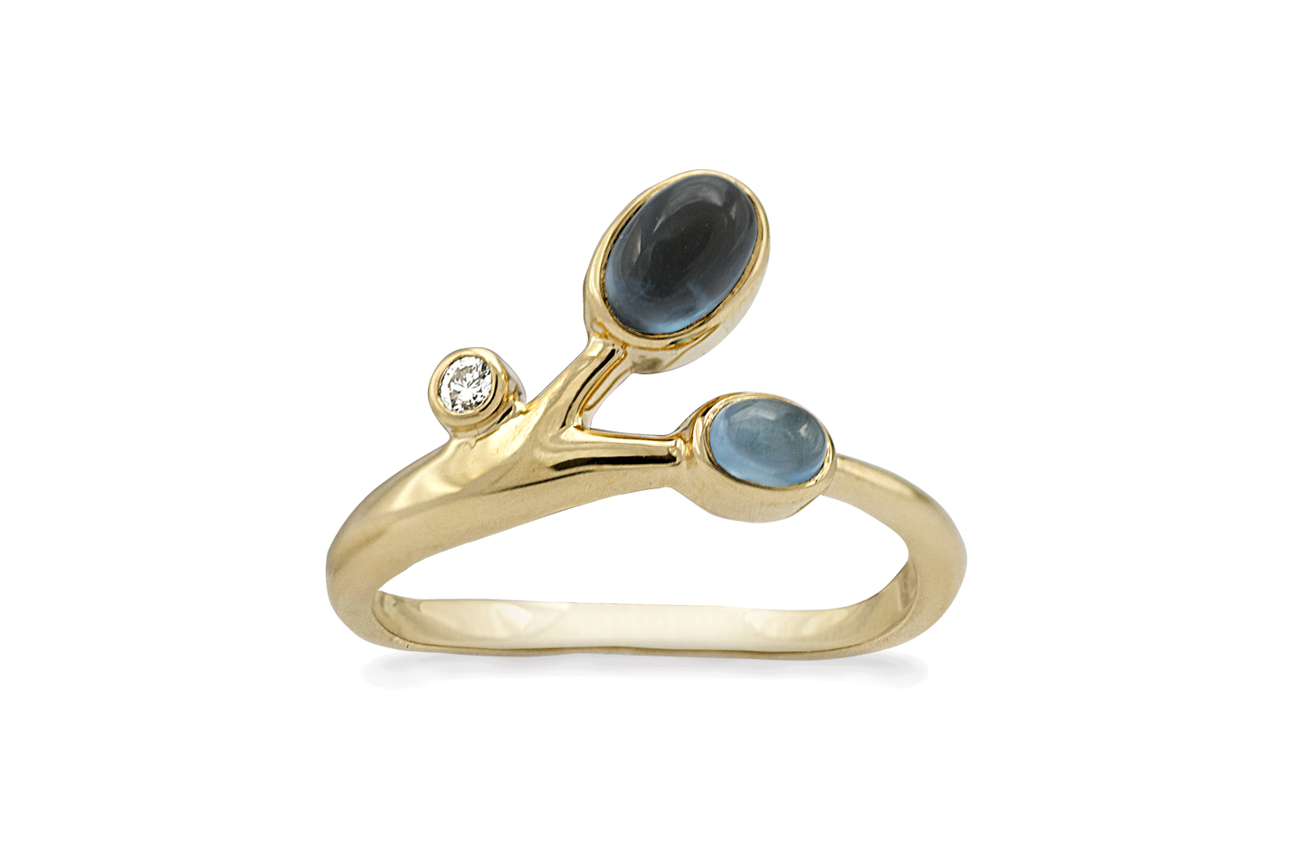 6x4mm cab. london blue topas, 4x3mm cab. swiss blue topas, 0,03ct diamant