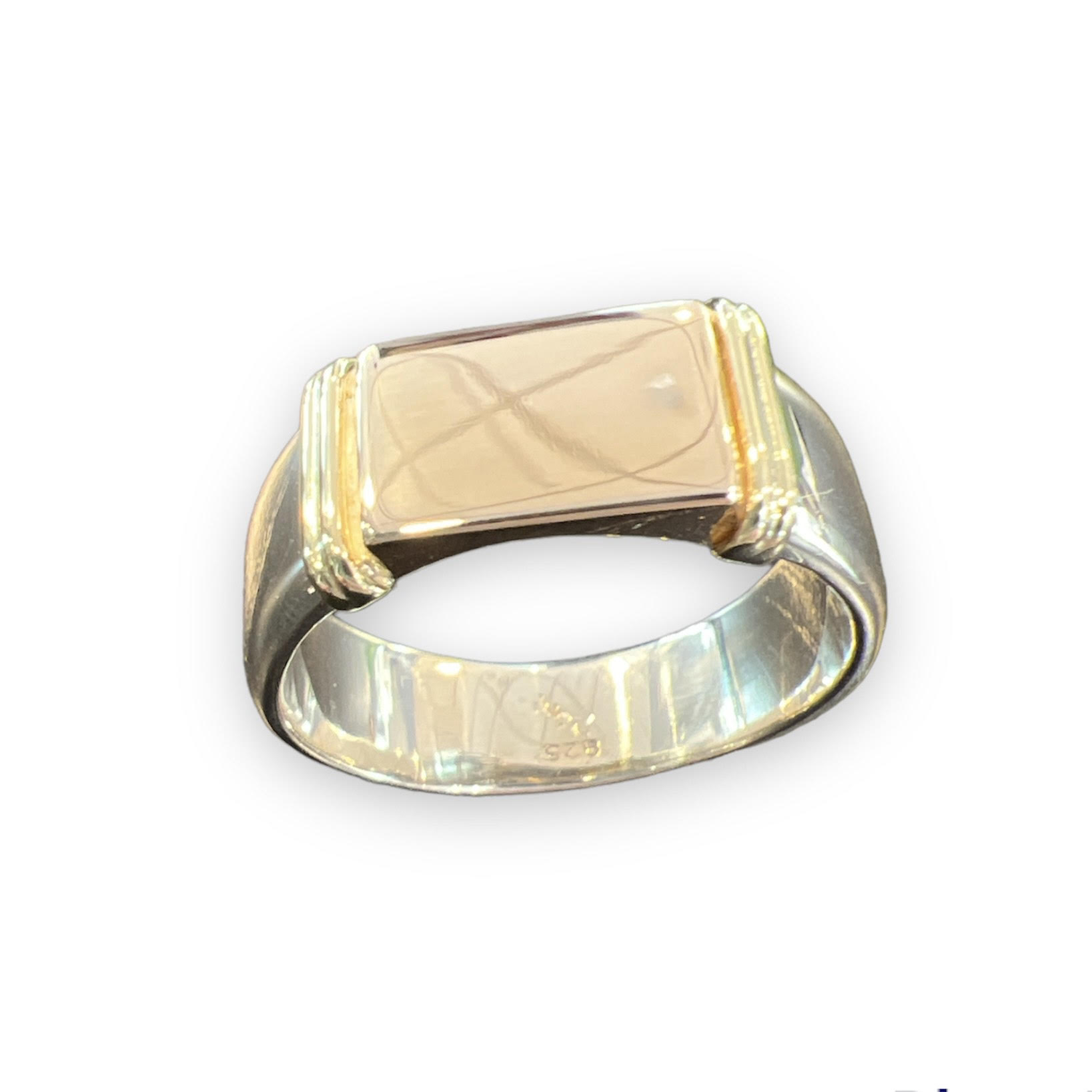 Håndlaget sølvring m. gullplate
