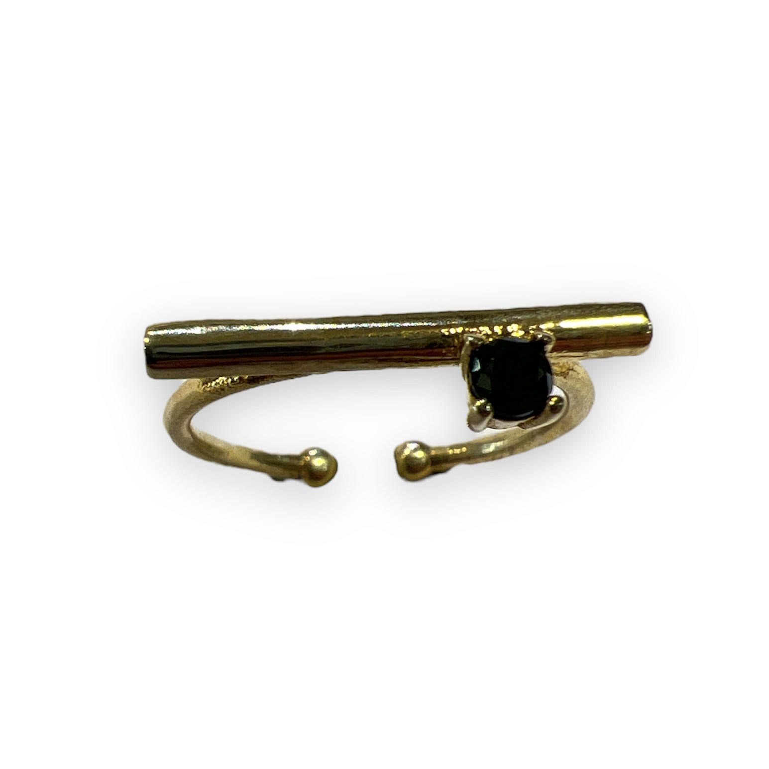 Forgylt ring m. svart cubic zirkonia (Regulerbar)