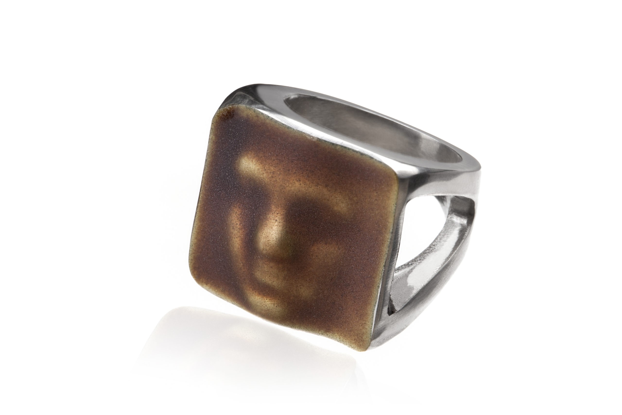 Beskrivelse 925 sølv, med emalje. En stor ring i maskeradeserien. Her kan du ane konturen av et menneskeansikt. Ringen er belagt med et tynt lag transparent matt emalje. Noen av modellene kan være bestillingsvare. Bilder lånt fra leverandør nettside: https://linnsigridbratland.com |