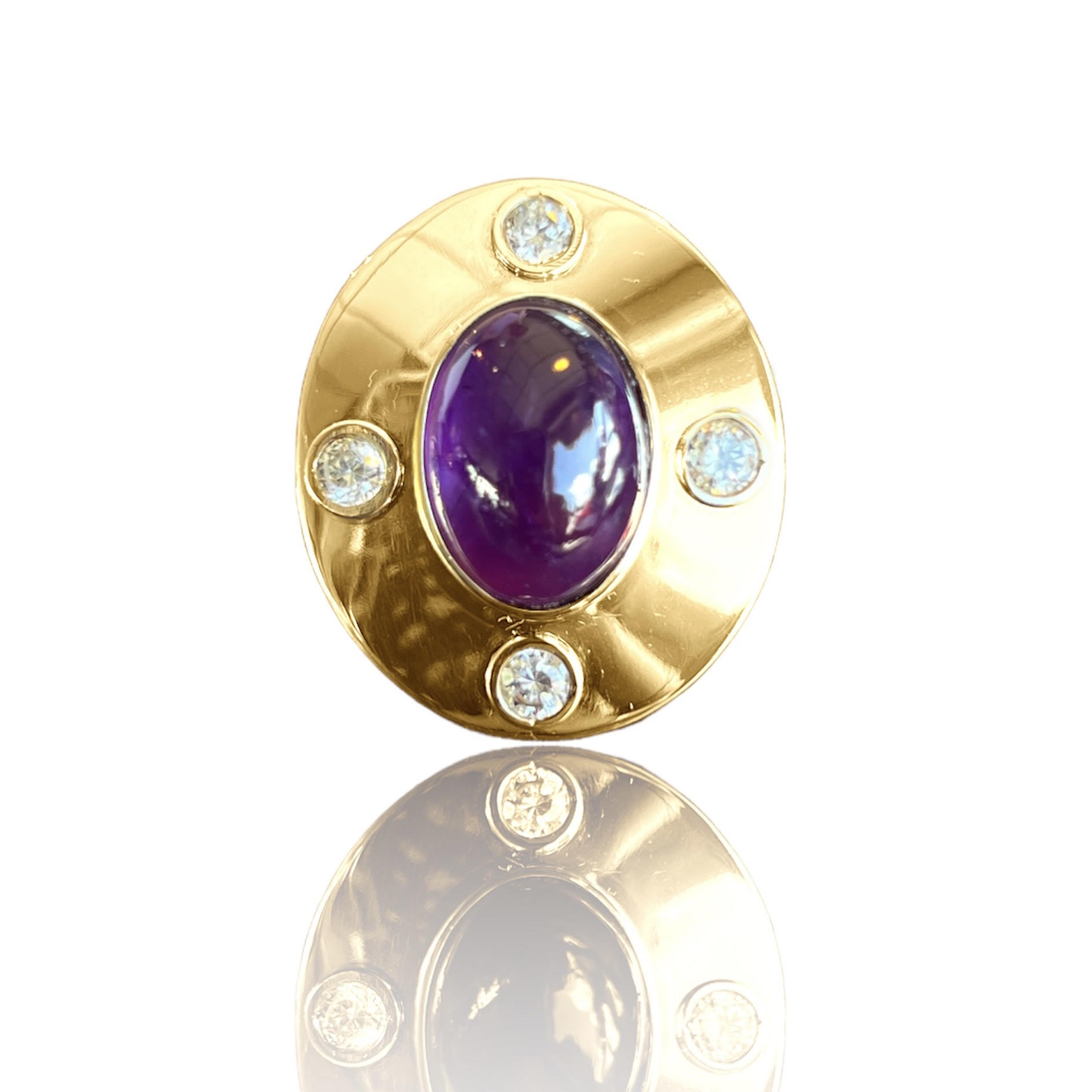 Beskrivelse Finnes kun i et eksemplar! Helt unik og håndlaget gullring med en stor ametyst stein og cubic zitkonia steiner Material: Gull 585 Størrelse: 3,5cm x 3cm Steiner: Ametyst 1,8cm x 1,3cm, Cubic Zirkonia diameter 4mm (fire stk). |