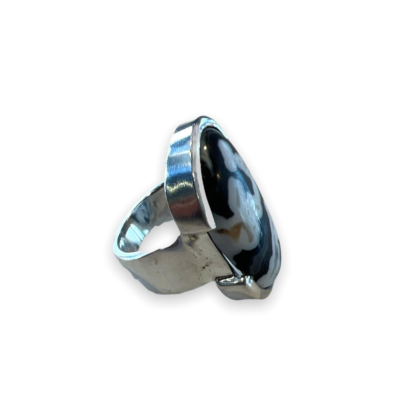Beskrivelse Unike smykker som det kun finnes en av! Smykkene er designet av en Australsk kunstner som tok med seg edle steiner fra hele verden! Material: 925 sølv Stein: Zebra jasper Størrelse: 2,8cm x 1,8cm Ring størrelse: 57 |