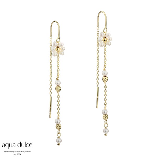 Beskrivelse Øretråde i forgylt sterling sølv med ferskperler blomster & twisted kuler. - 100% nikkelfri - 925 forgylt Sterling sølv |