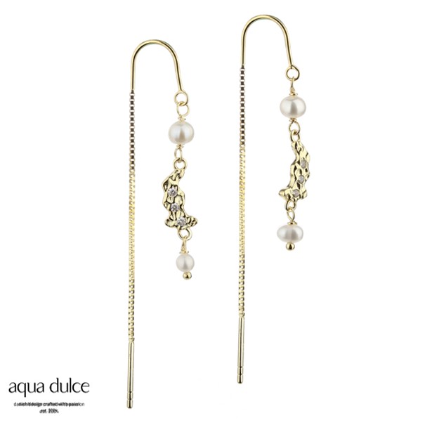 Beskrivelse Øretråde i forgylt sterling sølv med hvite ferskvannsperler & ruflet anheng med zirkonia - 100% nikkelfri - 925 Sterling sølv, forgylt |