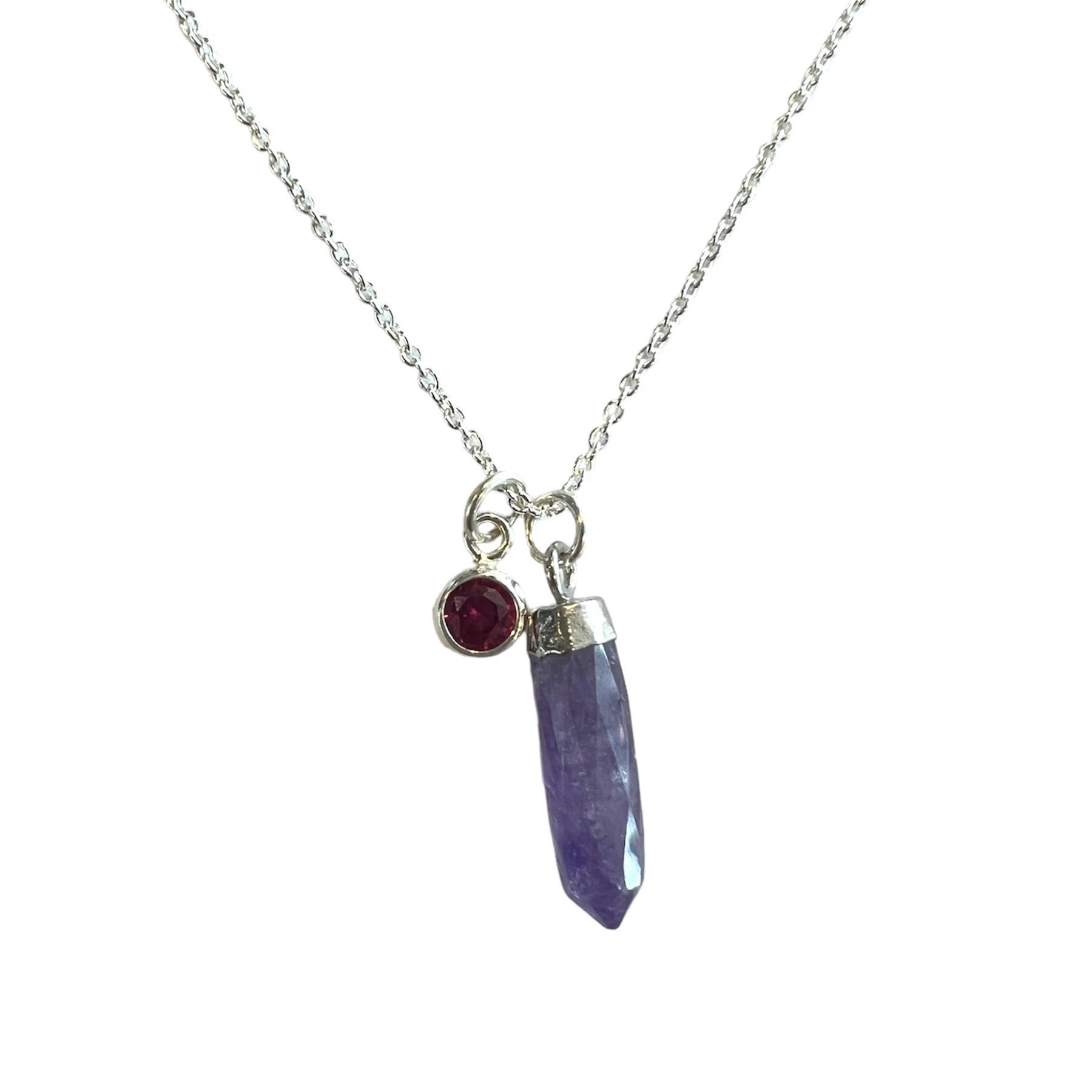 Beskrivelse Steiner: Ametyst & cubic zirkonia Metall: 925 Sølv Lengde: 50cm Elegant krystall anheng med fasetslipt ametyst og rosa cubic zirkonia. Anhenget er fremstillet med teknikken elektroforming og platinert. Laget av 925/- sølv som er platinert. Noen mennesker tillegger stein og krystaller en betydning, andre velger de etter deres utseende. Amethyst skulle virke avstressende og beroligende. |