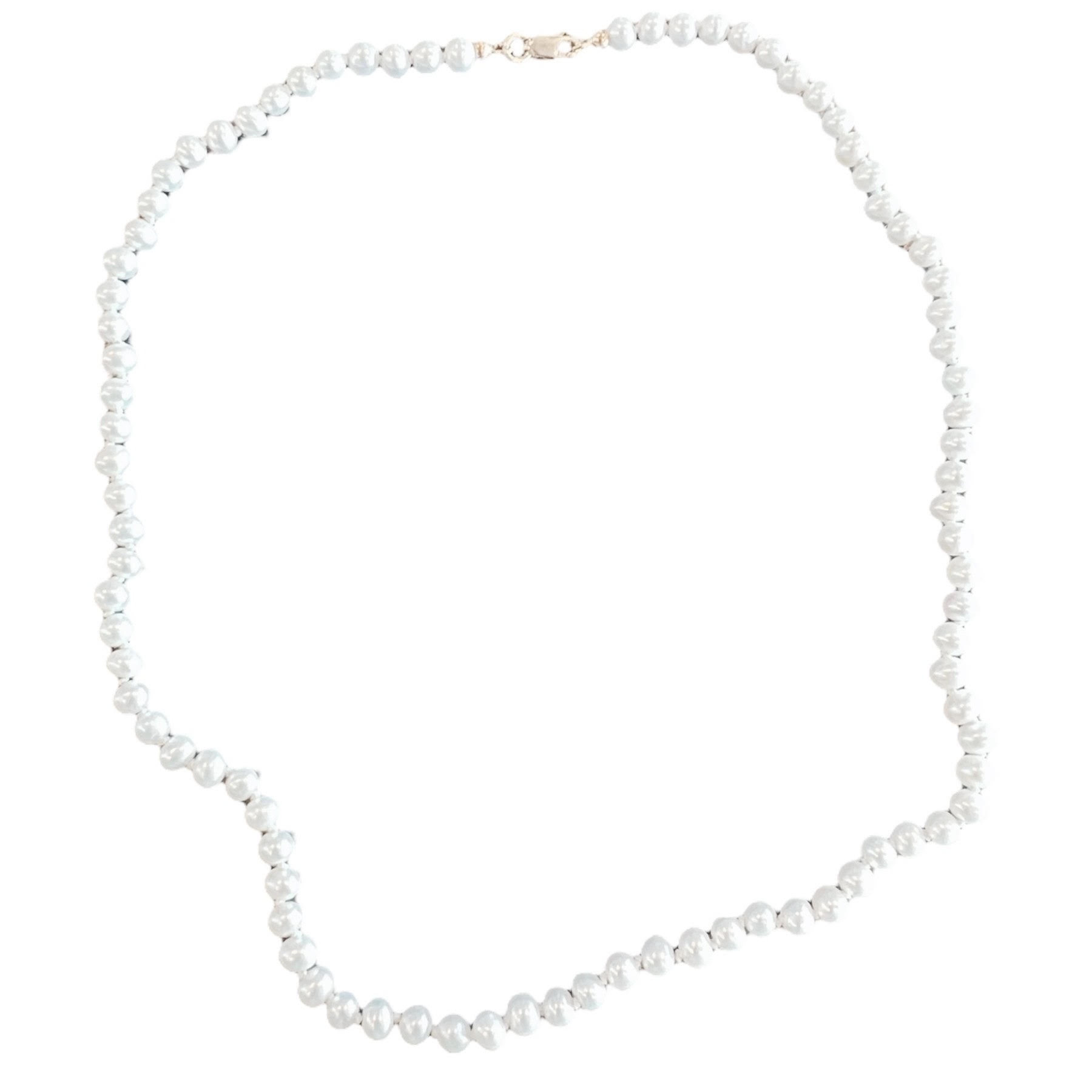 Beskrivelse Håndtred perlekjede hos oss! Ekte ferskvannsperler med med knuter. Hvite ferskvannsperler. Karabinlås med endefester, 585 gull - 10mm Diameter: ca. 5mm Lengde: 45cm |