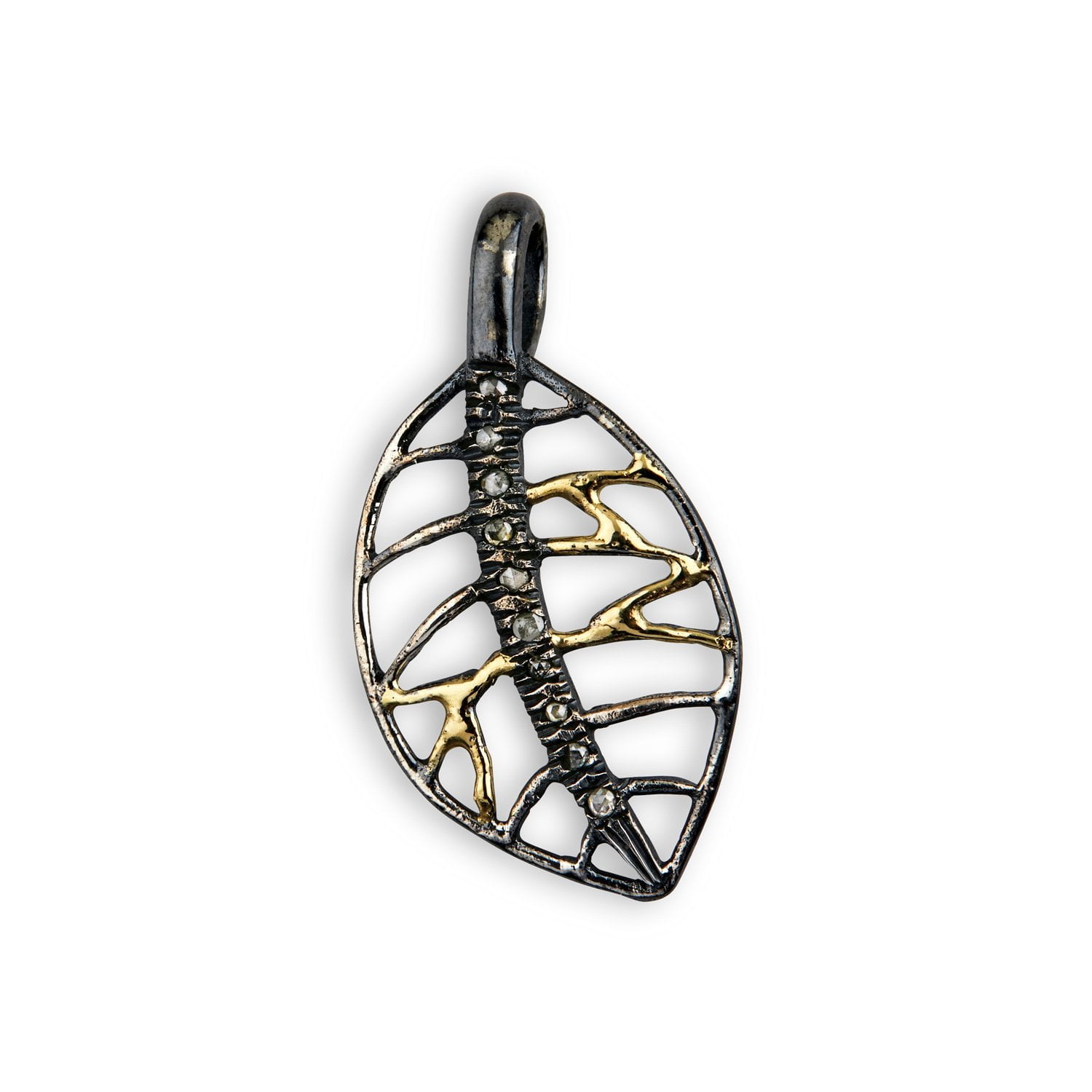 Beskrivelse Om smykke: Håndsmidd i 925 sterling sølv og 18 karat gull med roseslipte diamanter (0,08 ct). 30 mm Material: Sølv – 925 Sterling, Gull - 750 18kt. Overflate: Oksidert Stein: Diamant, 0,08ct. Kolleksjon: Shallow Seas |