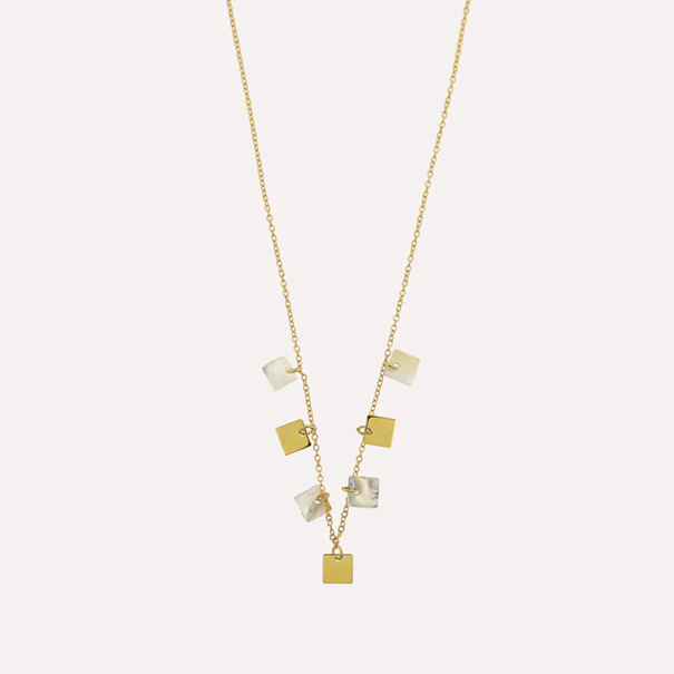 Beskrivelse Lenke halskjede i forgylt sølv med perlemoranheng. Material: Sterling Sølv, 925 Overflate: Forgylt Kjedelengde: 40 +3cm Anheng dimensjon: 6 x 6 mm Vekt: 2,0 g Håndlaget lokalt i Porto i Portugal med 100 % resirkulert sølv. |