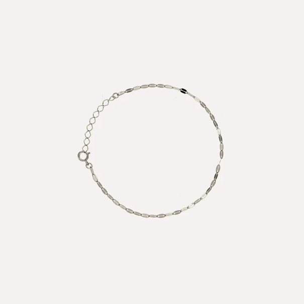 Beskrivelse Lenke armbånd i rhodinert sølv. Material: Sterling Sølv, 925 Overflate: Rhodinert Kjedelengde: 16 +3cm Tykkelse: 2mm Vekt: 2,0 g Håndlaget lokalt i Porto i Portugal med 100 % resirkulert sølv. |