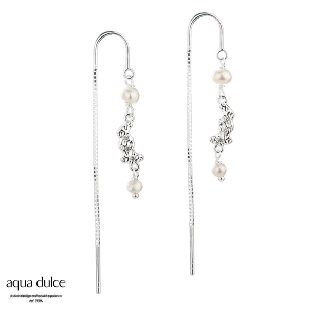 Beskrivelse Øretråde i sterling sølv med hvite ferskvannsperler & ruflet anheng med zirkonia - 100% nikkelfri - 925 Sterling sølv |
