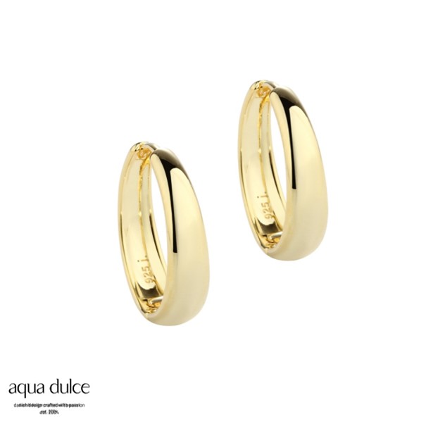 Brede creoler i blankt forgylt sterling sølv med click lås.