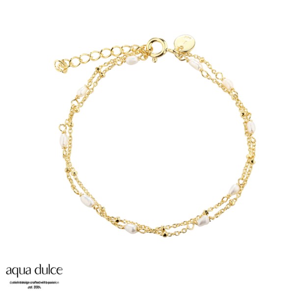 Beskrivelse Armbånd i forgylt sterlingsølv med små prikker og risformede ferskvannsperler. - 100% nikkelfri - 925 Forgylt Sterling sølv - Lengde: 17cm +3cm |