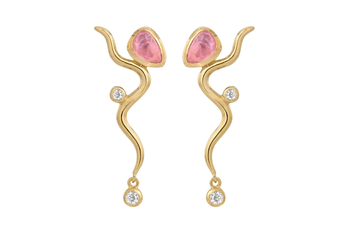 7x4.5mm rosa topas, 2.5mm zirkonia, 2mm zirkonia