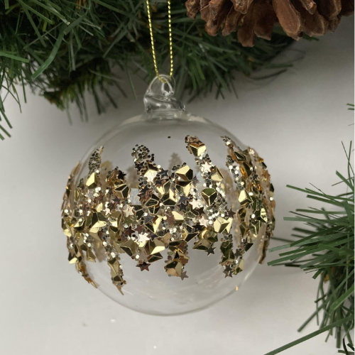 Julekule klart glass/gullglitter/paljetter
