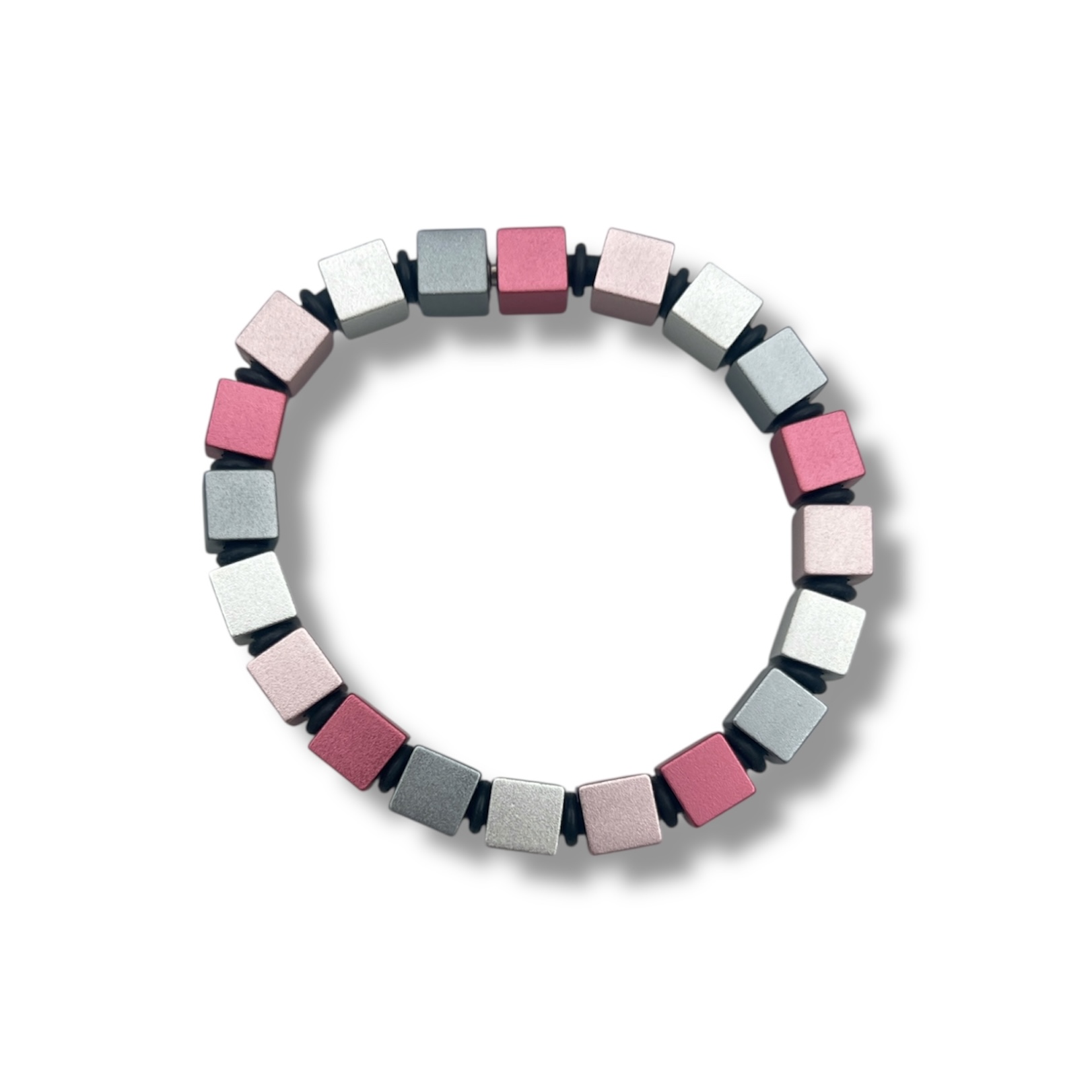 Beskrivelse Standard lengde 20 cm med magnetisk lås. Populært terningarmbånd i aluminium Størrelsen på terningene: 8×8 mm Farger: antrasitt (AN), natur (NA), rosa (RS) og bringebær (HI) |