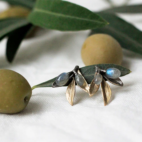 Beskrivelse Øya Skiathos ligger i Sporadene-regionen i Hellas, omgitt av det fantastiske turkise vannet. Olivensamlingen vår tar oss tilbake til alle havets magiske perler. Skiathos Olive øredobber er små pene olivengrener med pinner på baksiden av øredobben. Et par øredobber å elske, som tar oss med til de fantastiske olivenlundene i Hellas og dens strålende minner. Detaljer og materialer Metall: Bronze og detaljer i 14K gull Stein: Labradorittstein, 1 stk à 3x5 mm og 1 stk à 4x6 mm. Mål: 16 mm høy x 17 mm bred Våre smykker er alltid allergitestet og nikkelfrie. Bilde lånt fra leverandør nettside: www.lottajewellery.com |