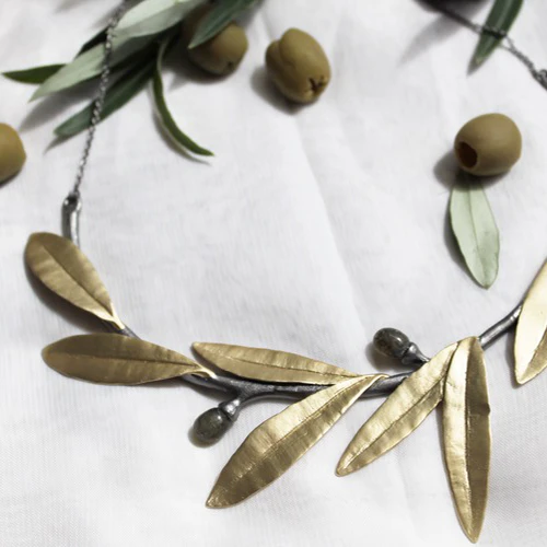 Beskrivelse Green Olive er et fantastisk halskjede inspirert av ville olivengrener. Den er laget i mørk bronse med to skjermende labradorittsteiner og matt 14K gull. Halskjedet har vår vakre signaturlås og er justerbar. Virkelig et utstillingsstykke! Metall: bronse Detaljer: Labradorittsteiner, 14K gull Lengde: 40cm/42,5cm/45cm |