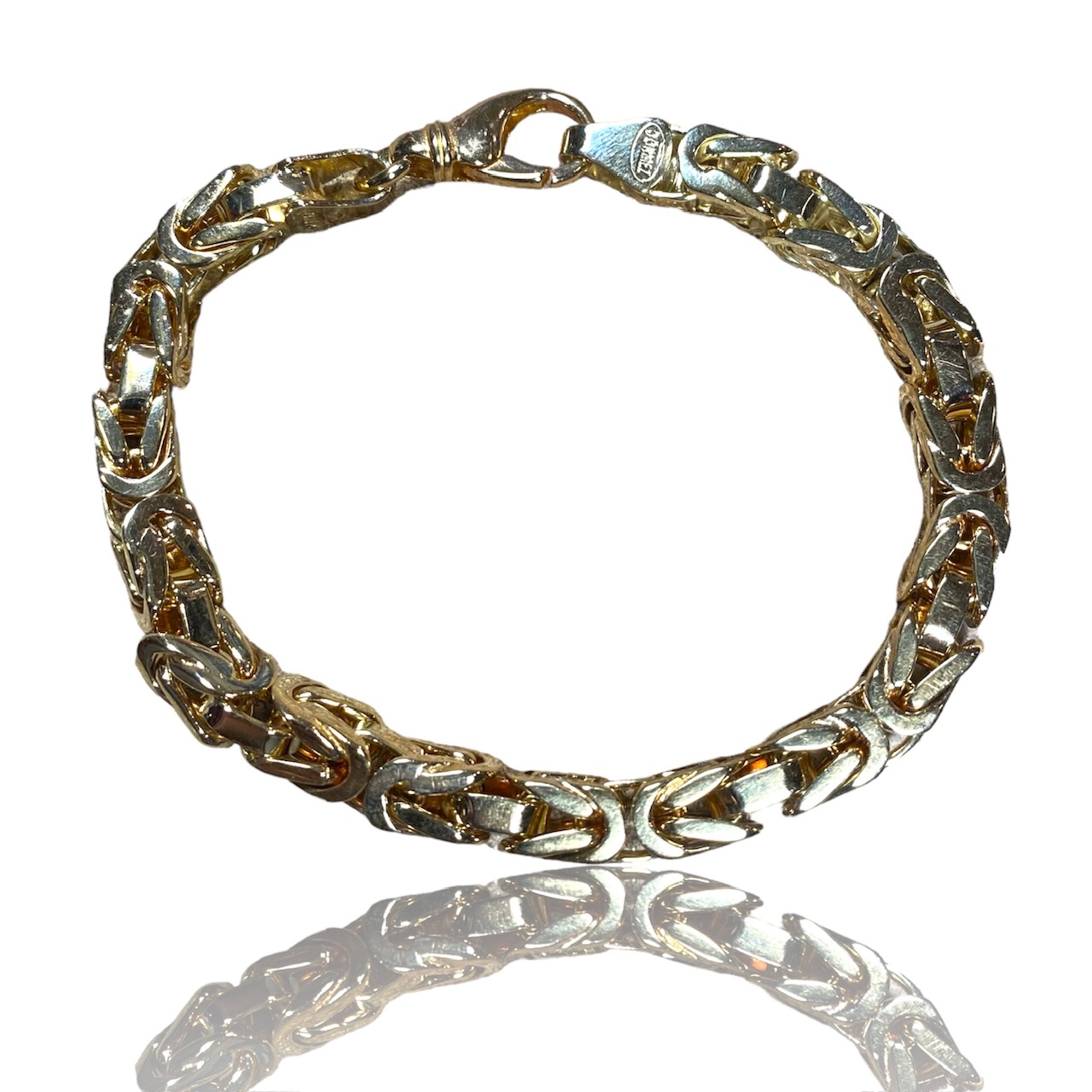 Beskrivelse Dette er smykker som har vært brukt, noe som gjør produktene rimligere enn å kjøpe det nytt. Det er derfor alltid noe slitasje og historie. Dette er et fantastisk tilbud som støtter gjenbruk og gir deg unike smykker. Alle smykkene er kvalitetsjekket, vasket, renset og polert opp av oss i butikken! Kommer i en flott eske. Lengde: 21 CM Vekt: 44,9g Bredde: 6MM Metall: 585 Gult gull |