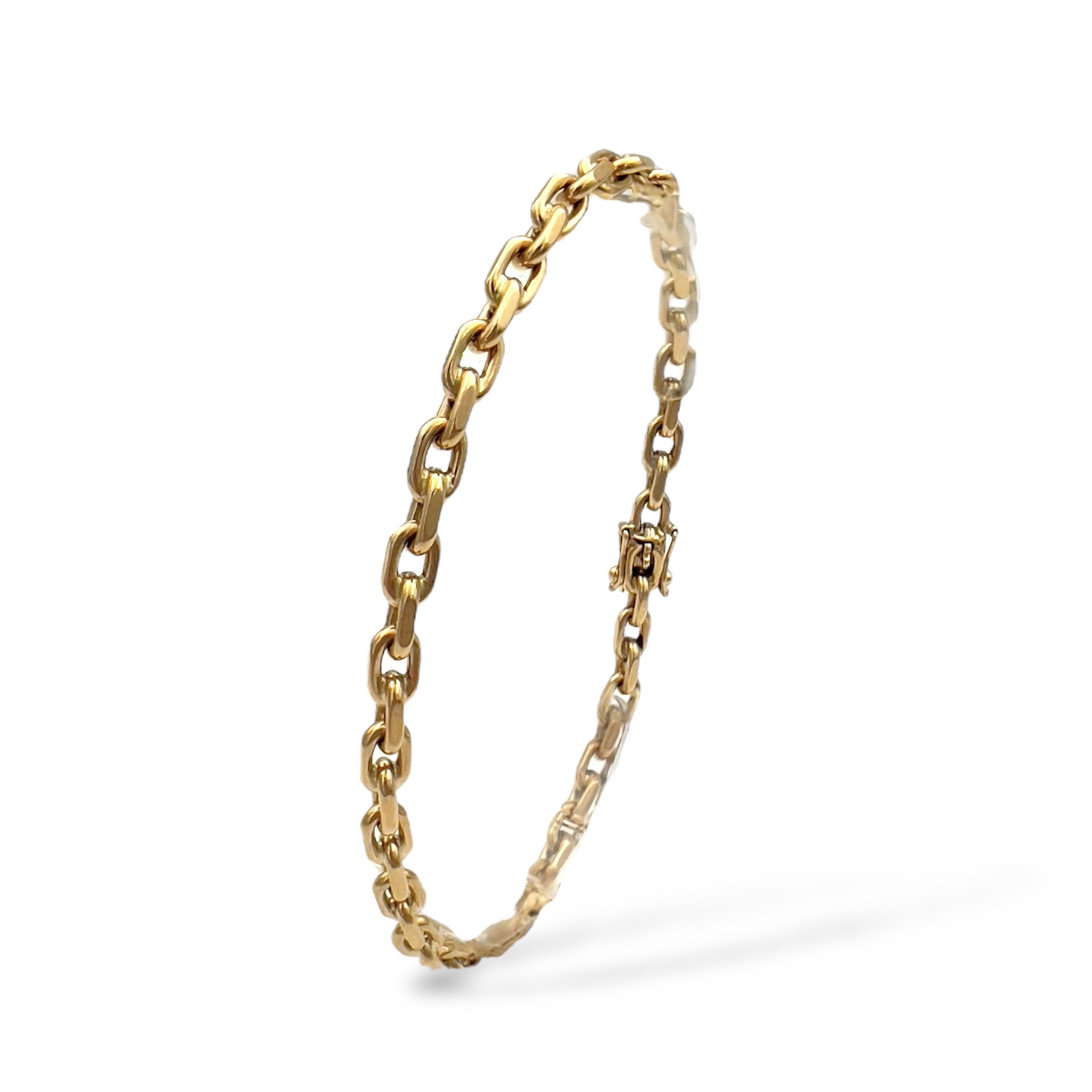 Beskrivelse Dette er smykker som har vært brukt, noe som gjør produktene rimligere enn å kjøpe det nytt. Det er derfor alltid noe slitasje og historie. Dette er et fantastisk tilbud som støtter gjenbruk og gir deg unike smykker. Alle smykkene er kvalitetsjekket, vasket, renset og polert opp av oss i butikken! Kommer i en flott eske. Lengde: 22 CM Vekt: 18,4g Bredde: 4,5MM Metall: 585 Gult gull Stempel: 585 & BNH, Bjarne N. Henriksen (Danmark) sitt ansvarstempel. |