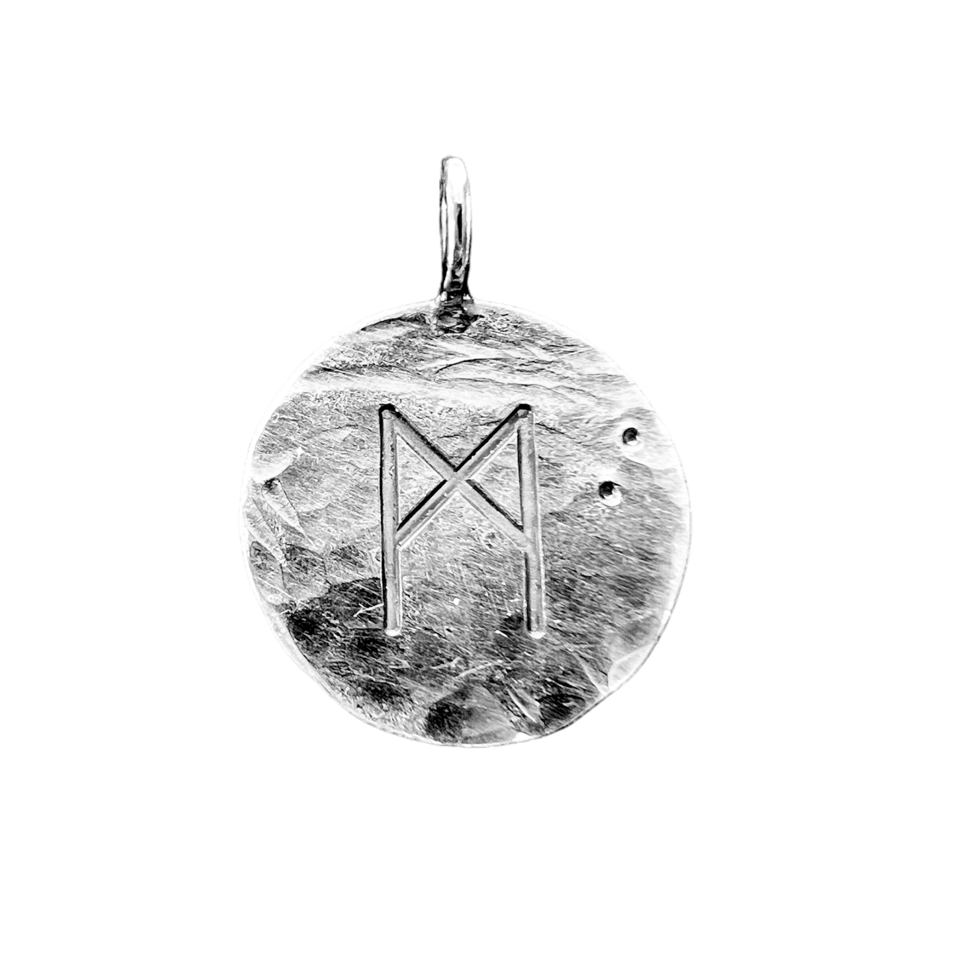 Beskrivelse Håndlaget hos oss! Alle er unike! Laget og designet av vår utrolig flinke Kristin Dalen! Laget i 925 sølv, hamret og oksidert. Dette er små plate anheng. Hvert anheng er forskjellig, dette har en diameter på 1,6cm MANNAZ - Fremmer klarhet og vilje til forandring. Den hjelper deg å se ærlig på deg selv og akseptere det som er uten fordommer. Da kan du velge hvem du er, hvem du ønsker å være, og gi slipp på det du er ferdig med. |