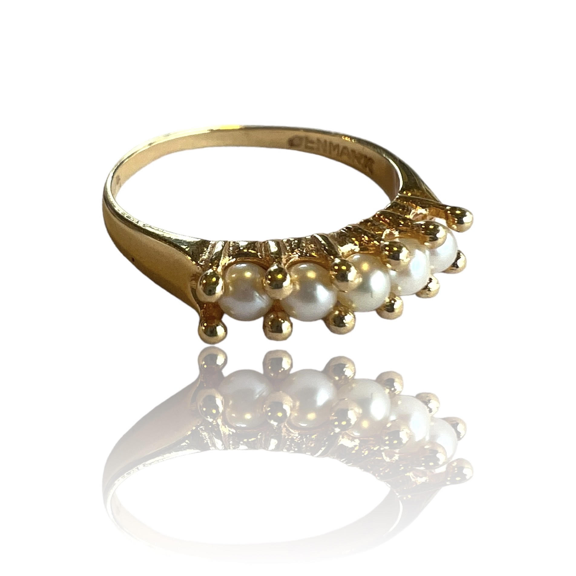 Beskrivelse Dette er smykker som har vært brukt, noe som gjør produktene rimligere enn å kjøpe det nytt. Det er derfor alltid noe slitasje og historie. Dette er et fantastisk tilbud som støtter gjenbruk og gir deg unike smykker. Alle smykkene er kvalitetsjekket, vasket, renset og polert opp av oss i butikken! Kommer i en flott eske. Material: 585 gull Stein: Feskvannsperler Vekt: 2,2g Ring størrelse: 51 |