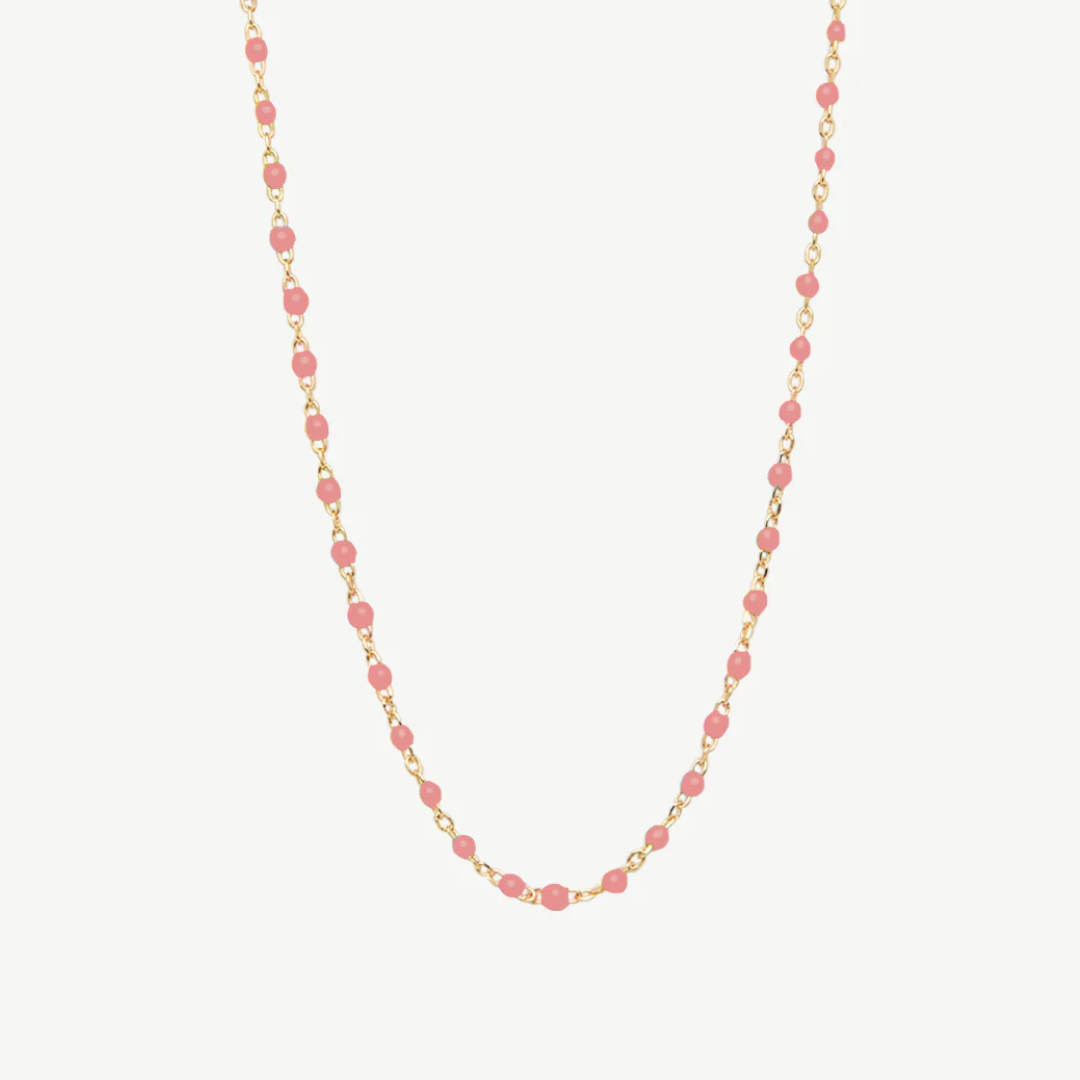 Beskrivelse Halskjede i forgylt sølv og emalje dråper. Material: Sterling Sølv, 925 Overflate: Forgylt Kjedelengde: 40 +3cm Vekt: 1,3 g Håndlaget lokalt i Porto i Portugal med 100 % resirkulert sølv. |