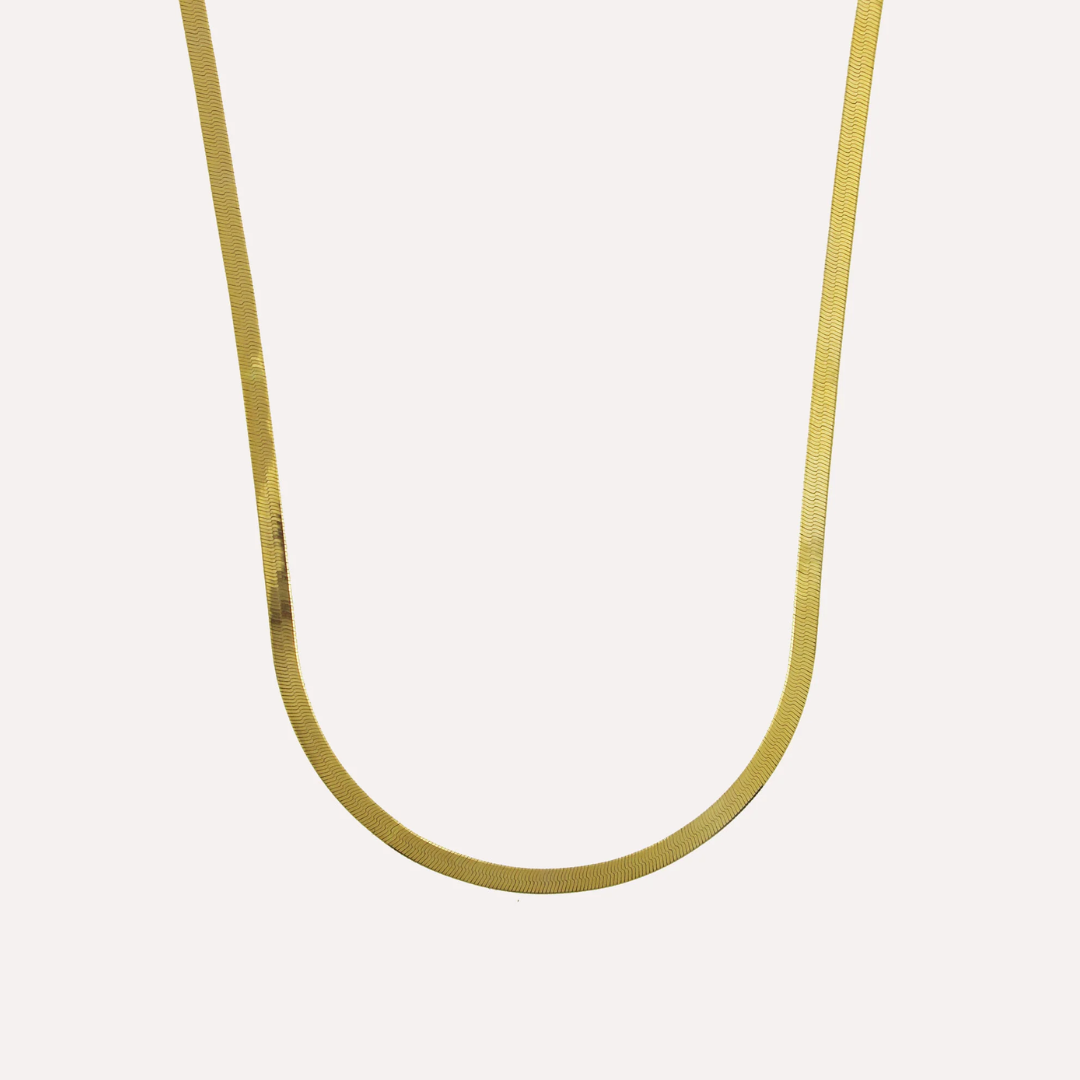Beskrivelse Slangekjede 3mm. Material: Sterling Sølv, 925 Overflate: Forgylt Kjedelengde: 40 cm Bredde: 3mm Vekt: 5 g Håndlaget lokalt i Porto i Portugal med 100 % resirkulert sølv. |