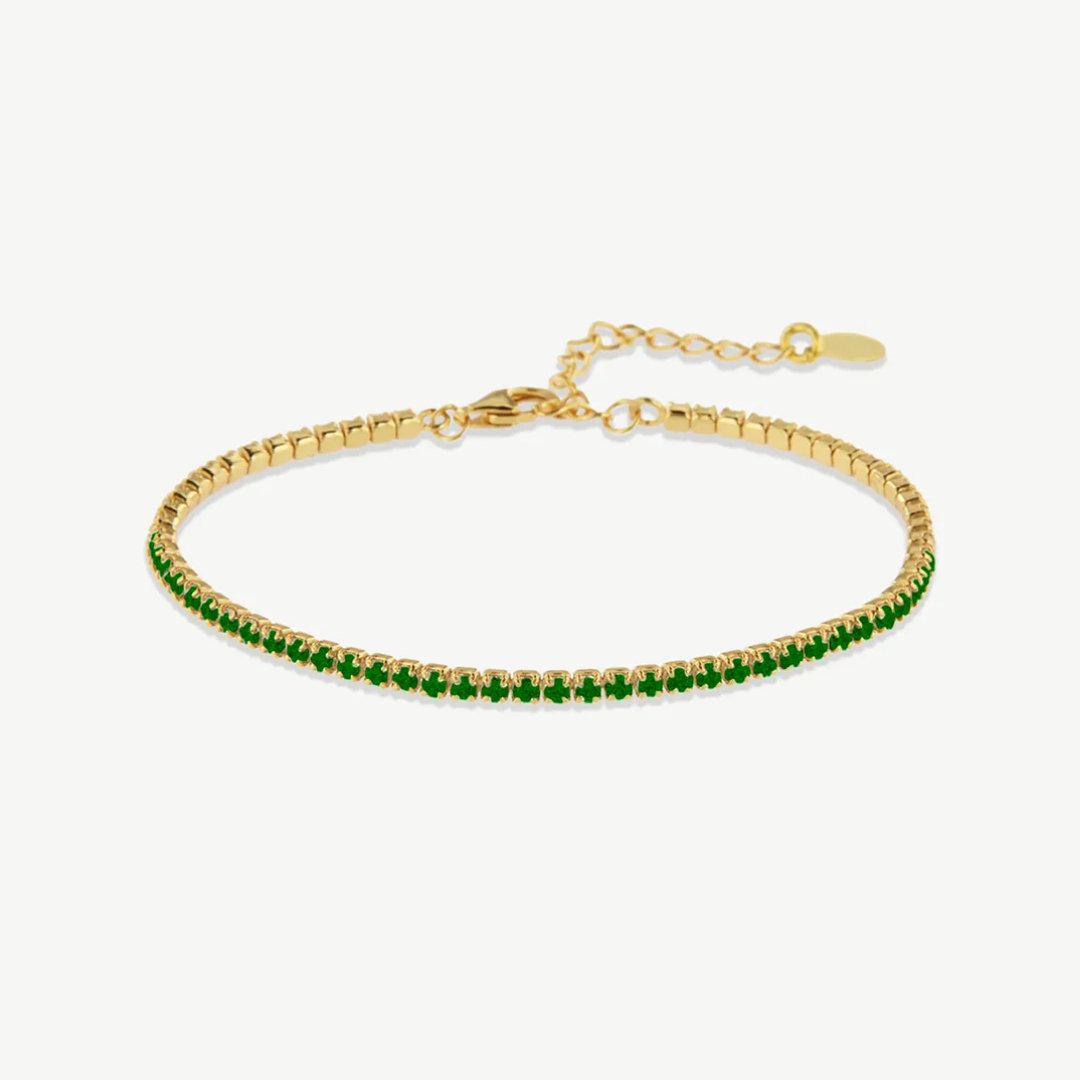 Beskrivelse Armbånd i forgylt sølv og cubic zirkonia. Material: Sterling Sølv, 925 Overflate: Forgylt Kjedelengde: 16 +4cm Vekt: 1,5 g Håndlaget lokalt i Porto i Portugal med 100 % resirkulert sølv. |