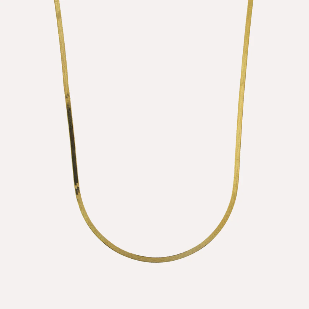 Beskrivelse Slangekjede 2mm. Material: Sterling Sølv, 925 Overflate: Forgylt Kjedelengde: 40 cm Bredde: 2mm Vekt: 3 g Håndlaget lokalt i Porto i Portugal med 100 % resirkulert sølv. |
