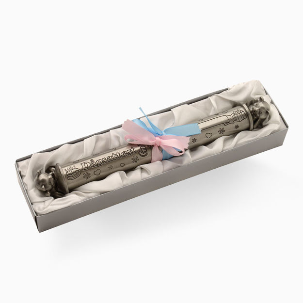 Beskrivelse Dåpsattest holder med bamser i tinn. KAN GRAVERES PÅ GRAVERINGSFELT! Legg til det du ønsker å gravere her og skriv i kommentarfeltet i handlekurven hva du ønsker å gravere. Ta kontakt om det skal graveres noe annet. |